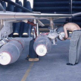 Ordnance for the A-1 Skyraiders offers a wide array of options. One of the most powerful weapon payloads for the A-1J CAS Spads was the BLU family of napalm and white prosperous canister bombs. These canister bombs, most often dropped from very low altitude, were finless and designed to tumble on the way down to ensure a wide impact effect once the canister hit the ground. The tumbling action would act to "spread" the fire-storming, fuel-gelled napalm or chemical-burning white phosphorus along the ground after the thin-cased aluminum canister cracked open.
